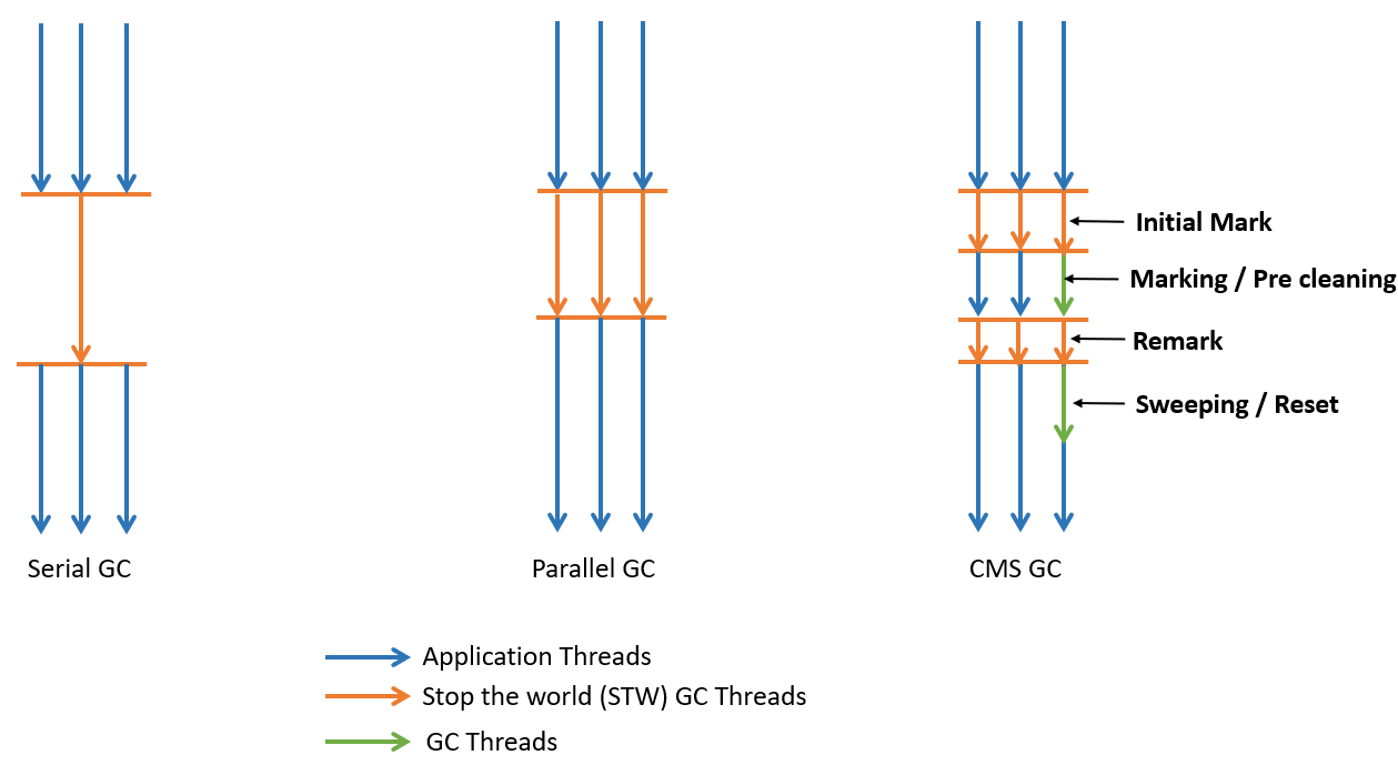 CMS GC๋ Parallel GC์ ๋ง์ฐฌ๊ฐ์ง๋ก ์ฌ๋ฌ ๊ฐ์ ์ฐ๋ ๋๋ฅผ ์ด์ฉํ๋ค. ํ์ง๋ง ๊ธฐ์กด์ Serial/Parallel GC์๋ ๋ค๋ฅด๊ฒ Mark Sweep ์๊ณ ๋ฆฌ์ฆ์ Concurrentํ๊ฒ ์ํํ๋ค.